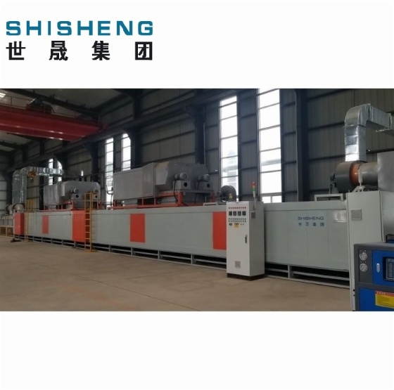燃氣網帶固化爐主要由進料段、燒結爐(預烘區、燒結區)、出料段、強冷系統、熱風發生爐、網帶傳動機構、電氣控制系統組成。
