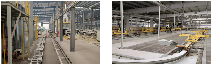 而乘用車輸送設備分為前處理電泳輸送設備和后處理輸送設備
